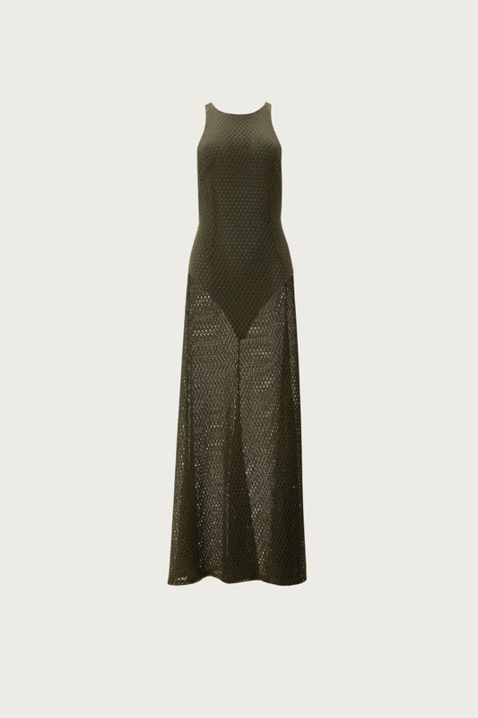 VK Khaki Crocheted Maxi Dress