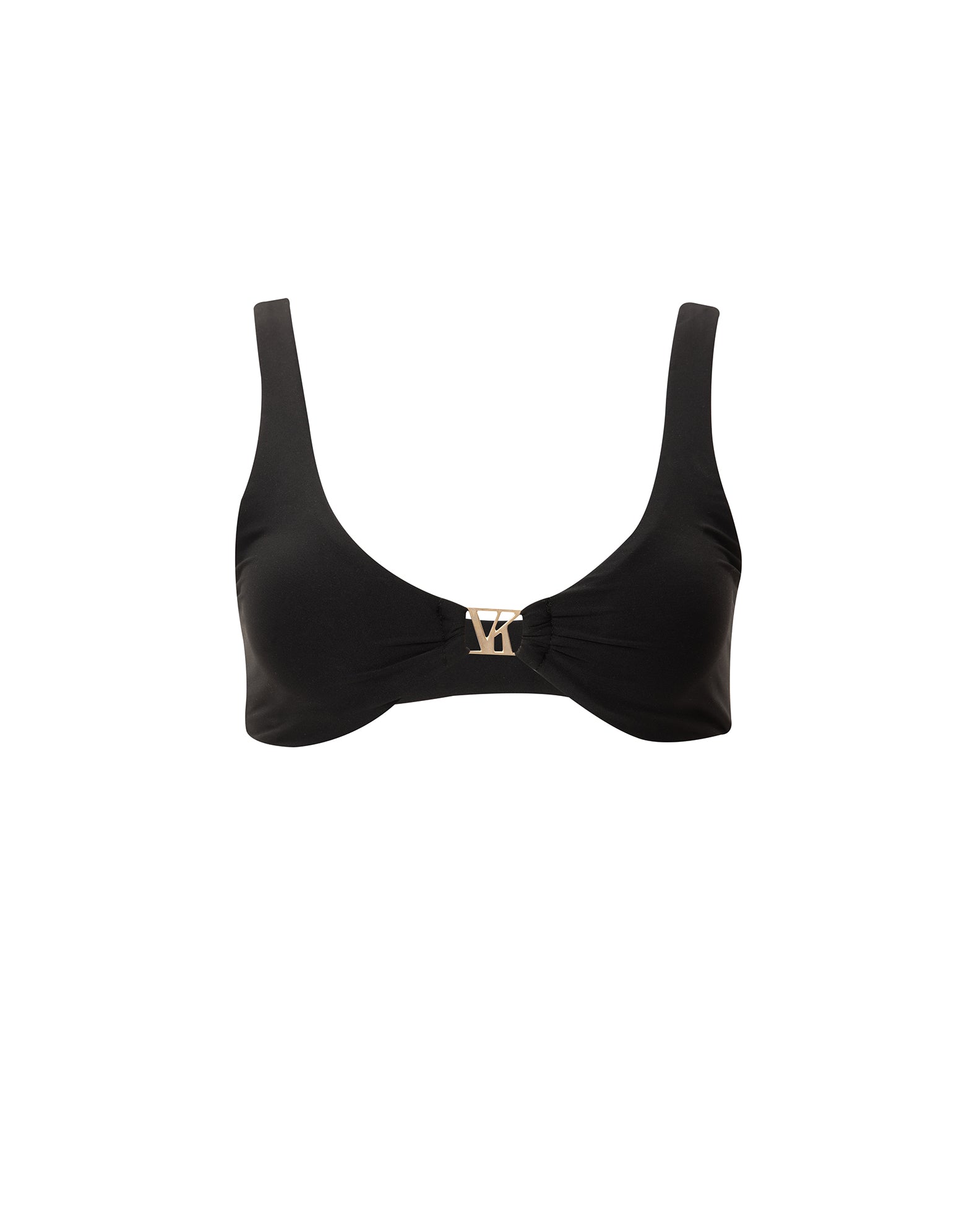 A sleek sports bustier featuring a metallic VK detail for a bold, modern edge.
