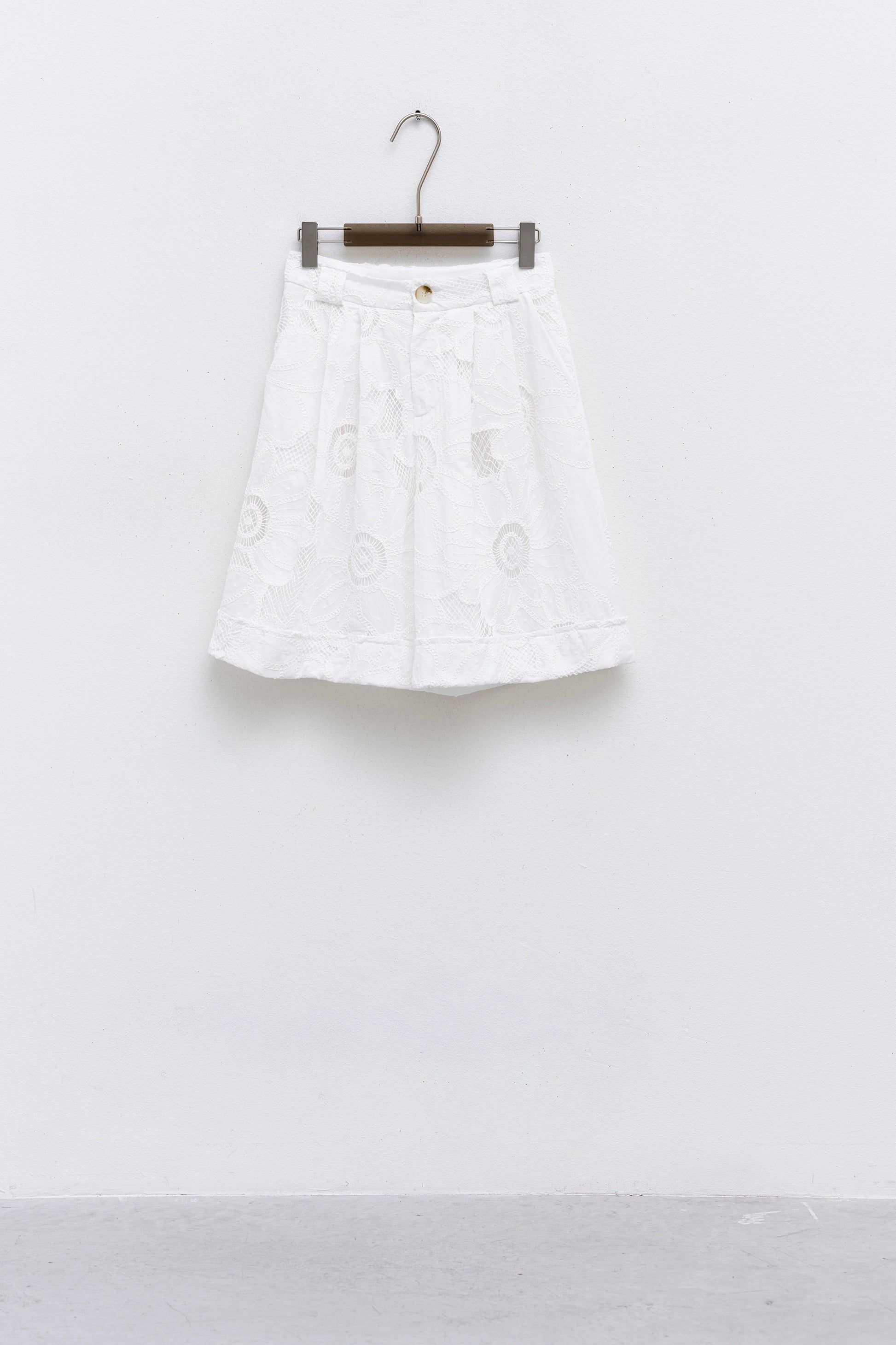 Bermuda shorts in Sangallo cotton with pleats. High waist with belt loops. Inner lining. It has two side pockets. Front zip and button closure.