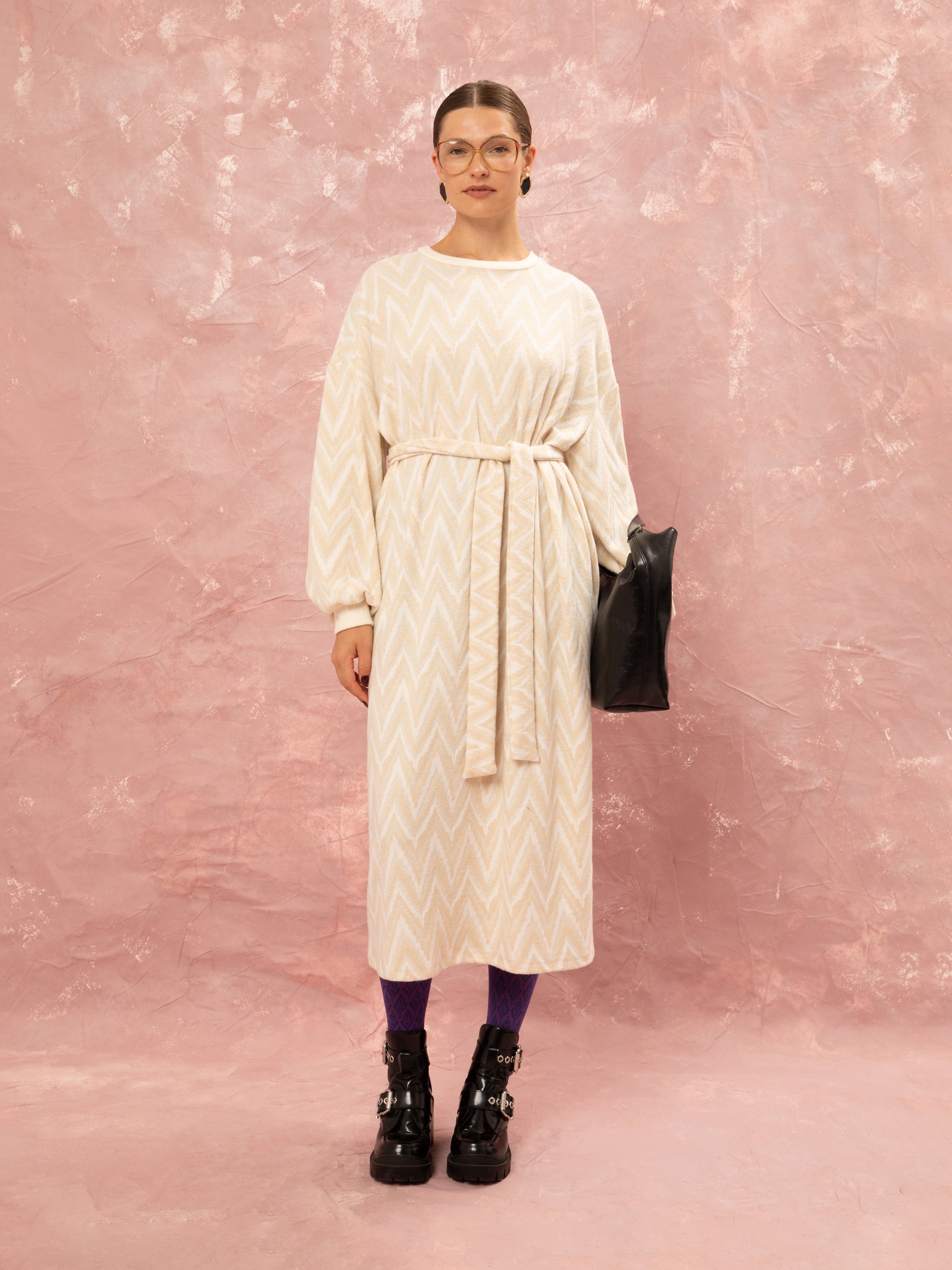 Knitted Oversized Dress - Beige